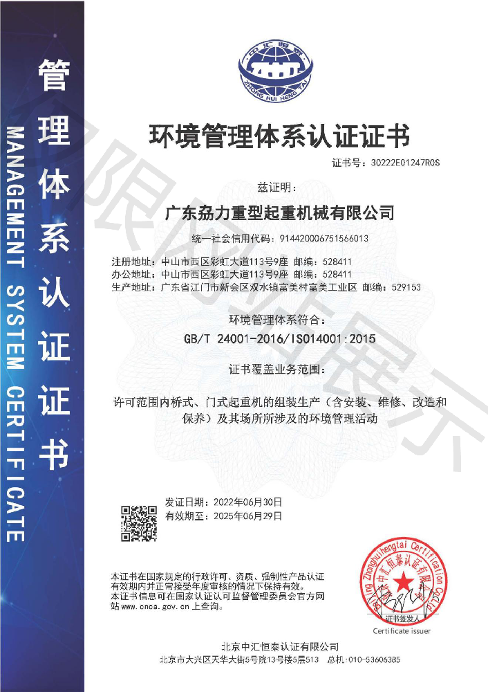 環(huán)境管理體系認(rèn)證證書